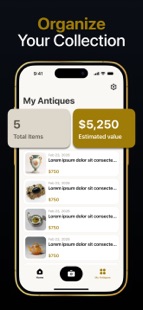 Every item you scan can be saved to your personal collection inside the app. Over time you can build a digital catalog of antiques, vintage items, coins, porcelain pieces, art objects, and other collectibles. You can track estimated values for each item and see the total value of your entire collection in one place.