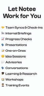 - Smart meeting note taker - Generate ready-to-share meeting minutes automatically after every business discussion.